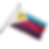 To the right of the chevron, three horizontal bands stretch to the fly end of the flag. In order from top to bottom, their colors are cyan blue, magenta, and a dark purple.